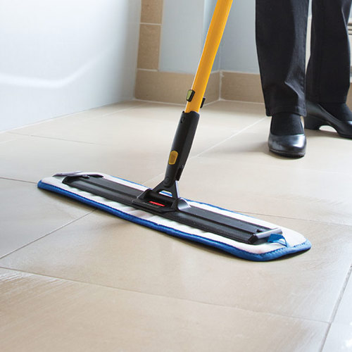 For example, when done without proper form, mopping can cause chronic pain in the back, arms and shoulders. Performing movements outside the typical range of motion - such as extending the arms to their maximum extent - can be dangerous, especially when repeated every day. Flat mops help to reduce this risk by making it easier to reach difficult spaces. Plus, mops equipped with an on-board spray reservoir do not require the cleaner to bend and wring out the mop, which is another movement that causes back pain.